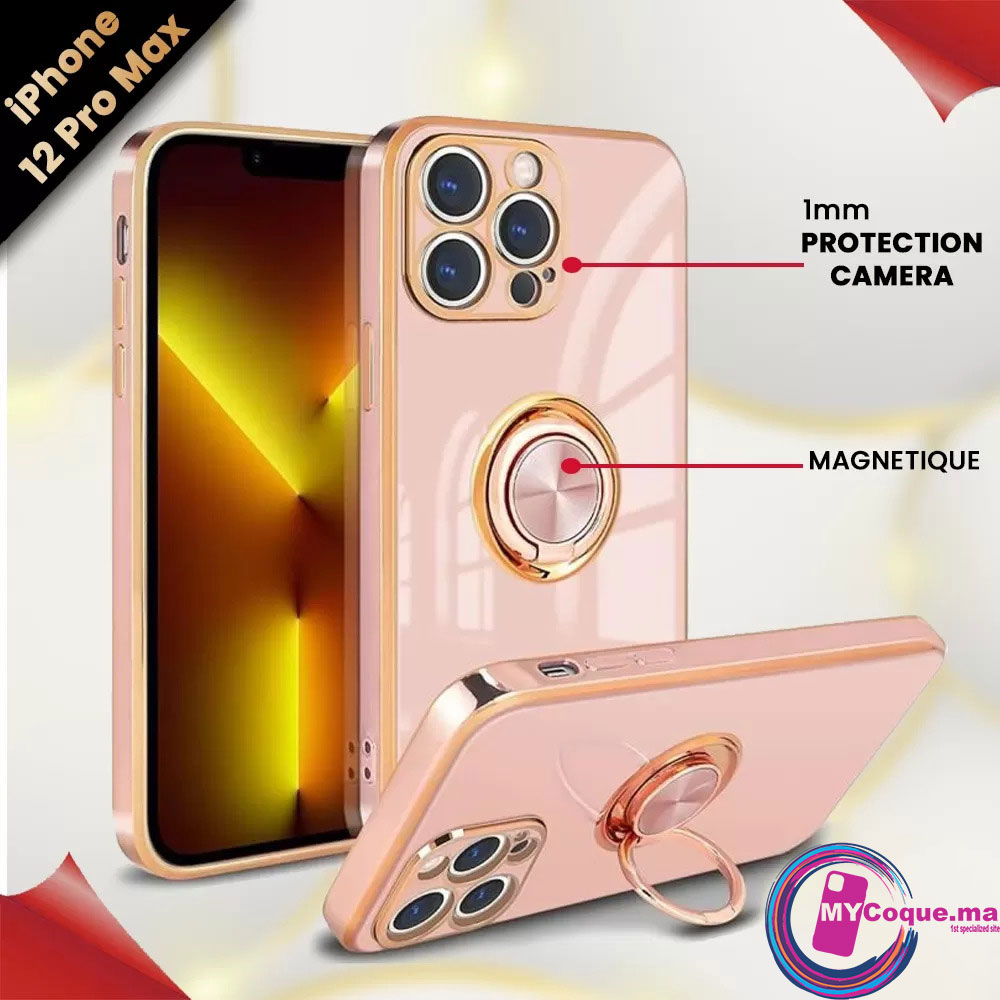 iPhone 12 Pro Max GOLD Brillant Magnétique avec Ring & Protection de Camera en TPU