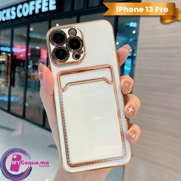 iPhone 13 Pro GOLD Brillant avec Protection de Camera Et Porte Carte en TPU