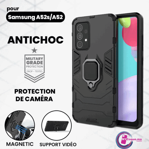 Coque Samsung A52s / Samsung A52 Antichoc Blindée Noir Ring Vidéos & Magnétique