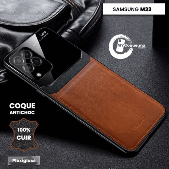 Coque Samsung M33 Etui Cuir Bleu & Plexiglass Coque Antichoc