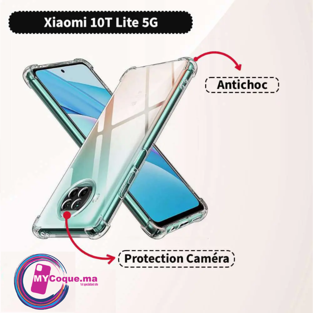 Coque Xiaomi Mi10T Lite 5G Transparent Antichoc Avec Protection Camera