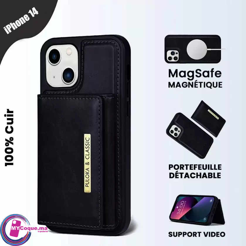 Coque iPhone 14ProMax Cuir PU Ultra Mince et Magnétique