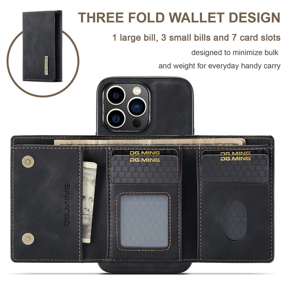 Mini Portefeuille détachable :Portefeuille séparé en cuir magnétique, 4 emplacements pour cartes et 2 poches pour l’argent en toute sécurité pour contenir plus de 3 cartes et un peu plus d’argent, étui détachable facile à transporter .
