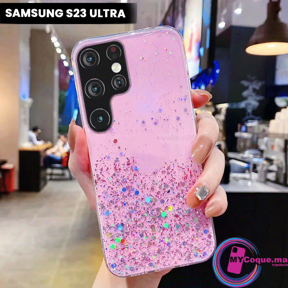Pochette Samsung S23 Ultra Scintillante,& Brillante rose