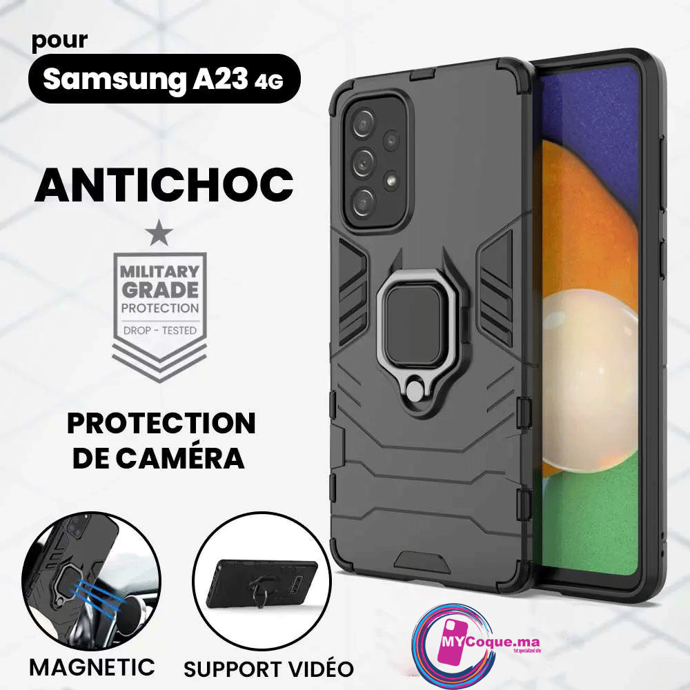 Coque Samsung A23 4G Antichoc Noir + Ring & Magnétique